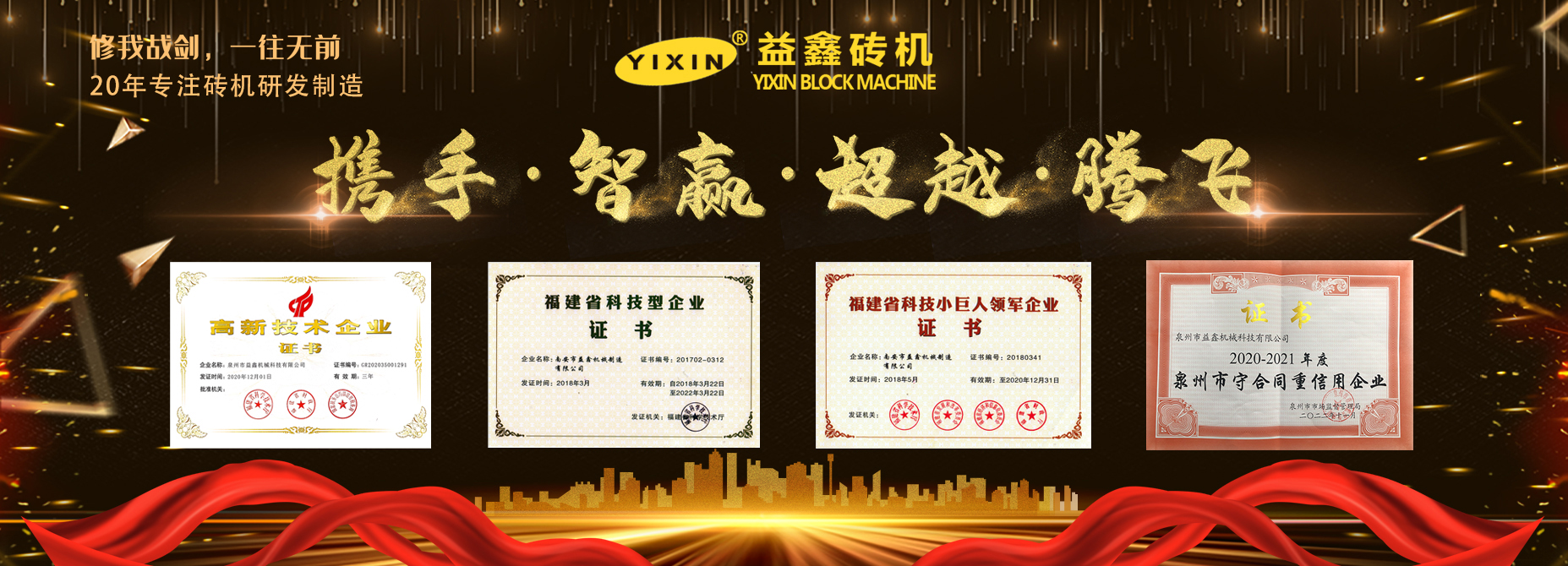 公司創(chuàng)建于九十年代初,是國家高新技術企業(yè)、福建省科技型企業(yè)、福建省科技小巨人領軍企業(yè)、守合同重信用企業(yè)。公司通過ISO9001:2000版質(zhì)量管理體系認證,產(chǎn)品采用國際標準制造,產(chǎn)品通過“CE”認證。益鑫磚機是一家集研發(fā)、生產(chǎn)、銷售為一體的混凝土制品成型機的專業(yè)廠家。益鑫公司擁有一支研發(fā)實力強勁的優(yōu)秀隊伍,目前公司擁有已授權各項專利技術數(shù)十項,益鑫生產(chǎn)的QT/YX系列混凝土砌塊成型機經(jīng)過十多年的不斷改進和完善,產(chǎn)品規(guī)格齊全、性能可靠、質(zhì)量優(yōu)異、服務周到及時,廣泛滿足不同用戶的需求,并得到了國內(nèi)外客戶的充分肯定,出口訂單逐年穩(wěn)步增加,國內(nèi)銷量增幅顯著。